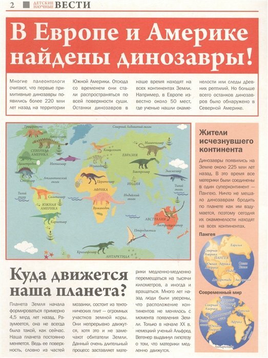 Книга очень необычная, оформлена как научная газета. Информация подаётся в виде отдельных статей о разных видах динозавров, раскопках. Картинки к каждой статье, довольно красочные. В книге много информации, которой нет в других. покупала для ребенка 8 лет прочитали за один вечер, написано понятным языком. Листы плотные, бумага хорошая.