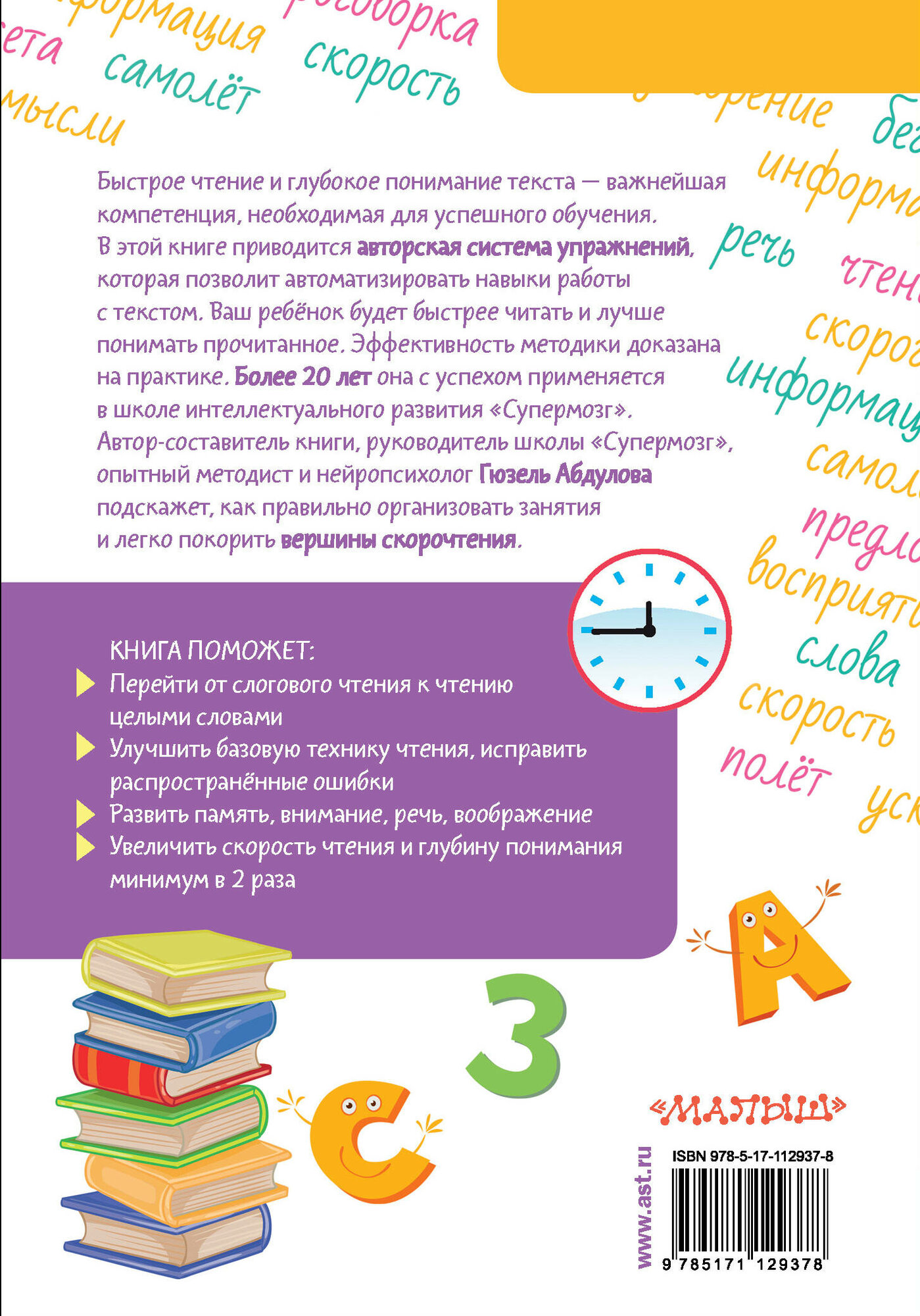 Рано или поздно все родители задумываются о том, как привить ребёнку любовь к чтению. Некоторые ставят задачу более категорично: как заставить ребёнка читать. Это зачастую принимает формы монотонной автоматизации навыка или даже наказания. Но это ошибочная тактика, которая мало что даёт! Секрет успеха в развитии скоромышления и положительной мотивации. В этой книге вы найдёте авторскую систему игровых заданий, которые улучшат технику чтения и заложат прочные основы для навыка скорочтения. Они более 20 лет с успехом применяются в школе интеллектуального развития "Супермозг". Опытный методист и нейропсихолог Гюзель Абдулова подскажет, как правильно организовать занятия и легко покорить вершины скорочтения.