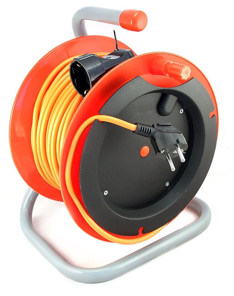 - Силовой удлинитель на катушке К1-Е-50 для электрической газонокосилки и других электро инструментов