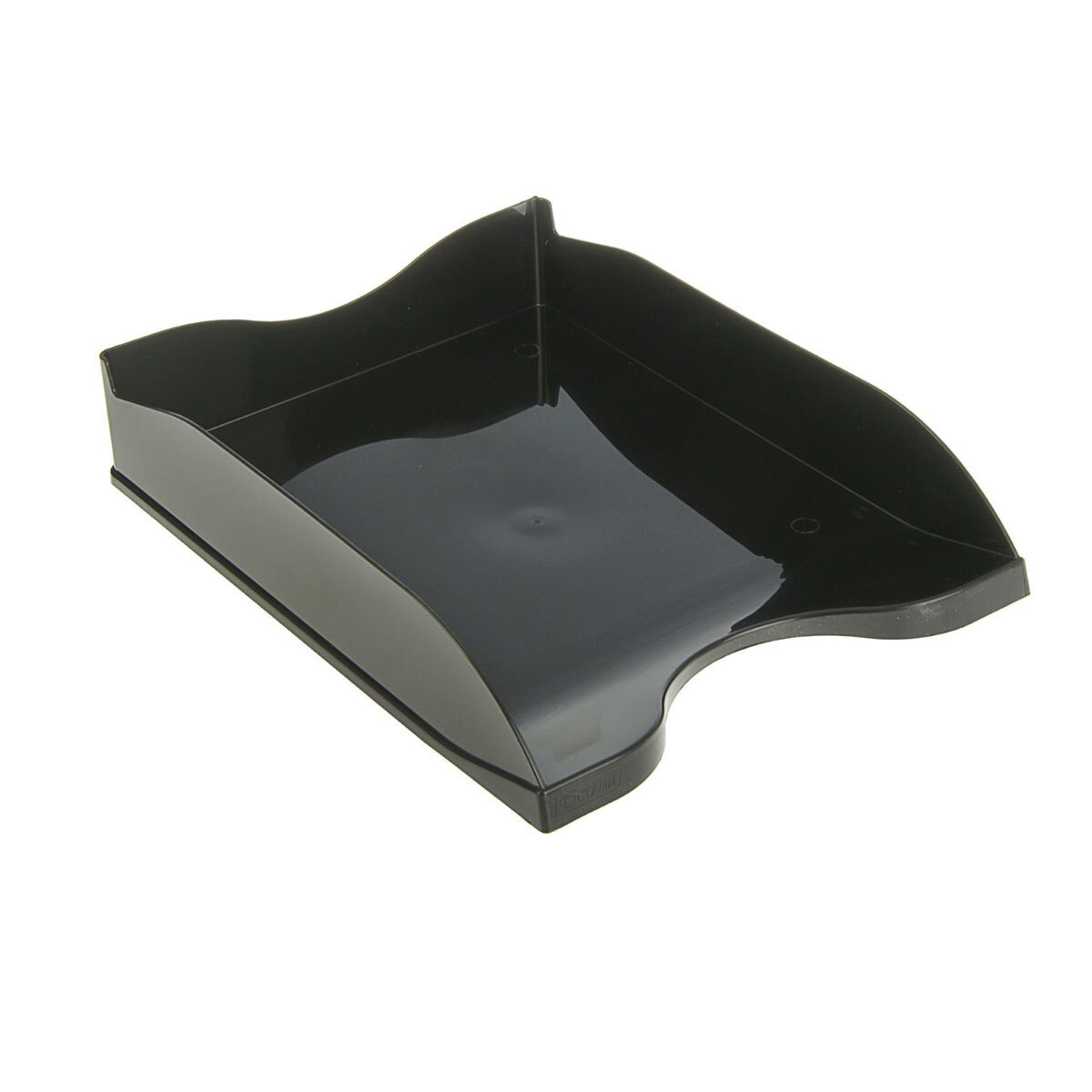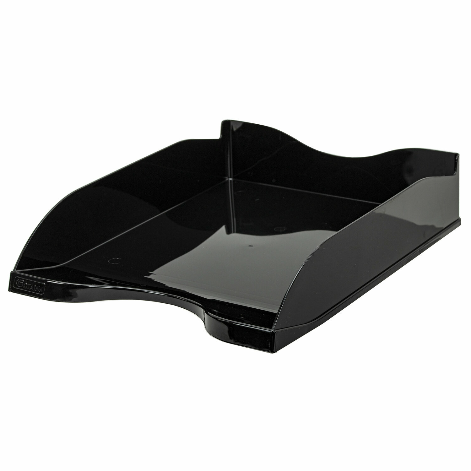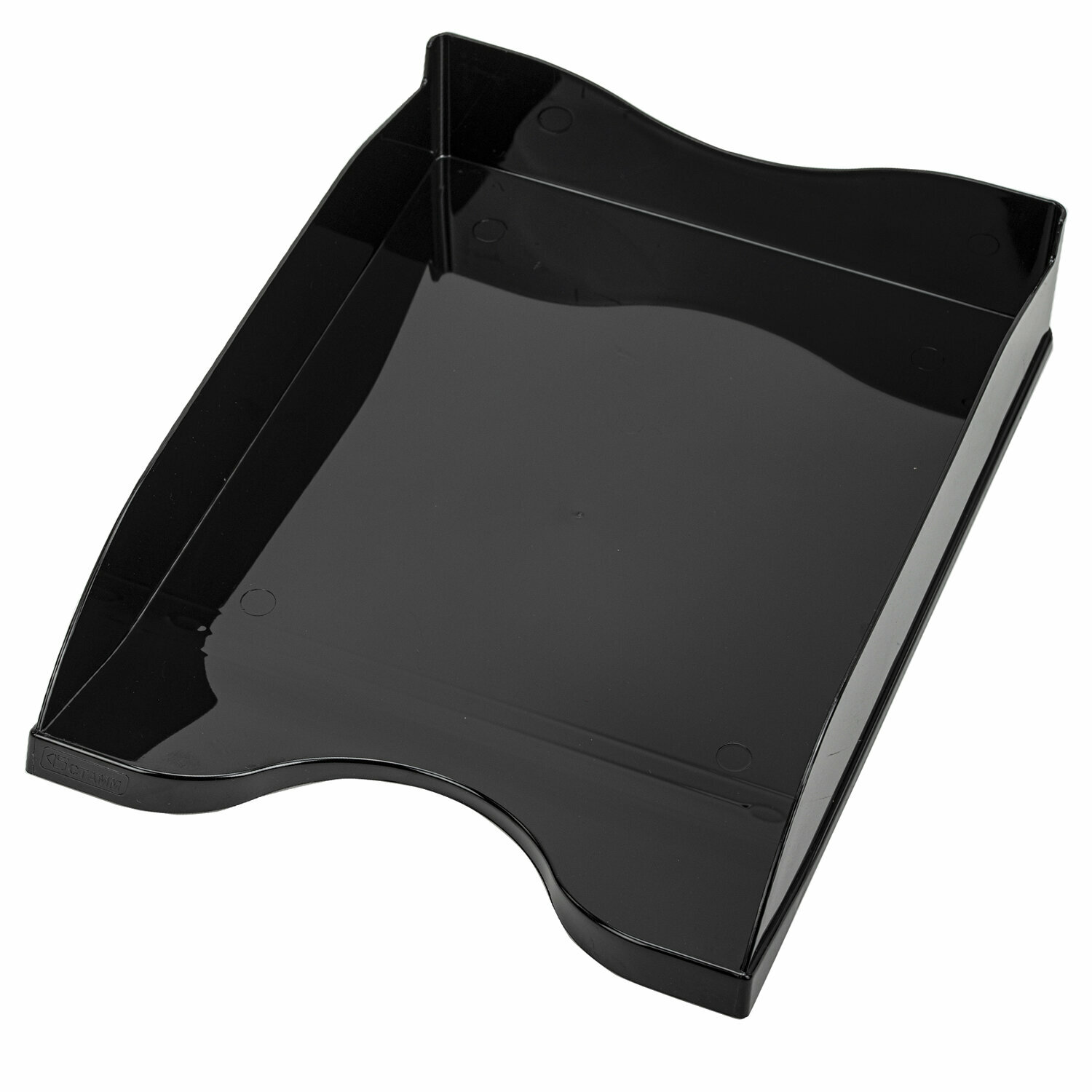 Лоток для бумаг горизонтальный Стамм "Люкс", черный, с пазами. Горизонтальный лоток представляет собой современную, надёжную и функциональную конструкцию для хранения и систематизации документов и бумаг формата А4. Имеет современный дизайн, вместителен, устойчив. Могут установливаться друг на друга. На корпусе имеются фиксаторы, препятствующие соскальзыванию с нижнего лотка. Изготовлен из полипропилена. Габариты 254/340/65 мм.