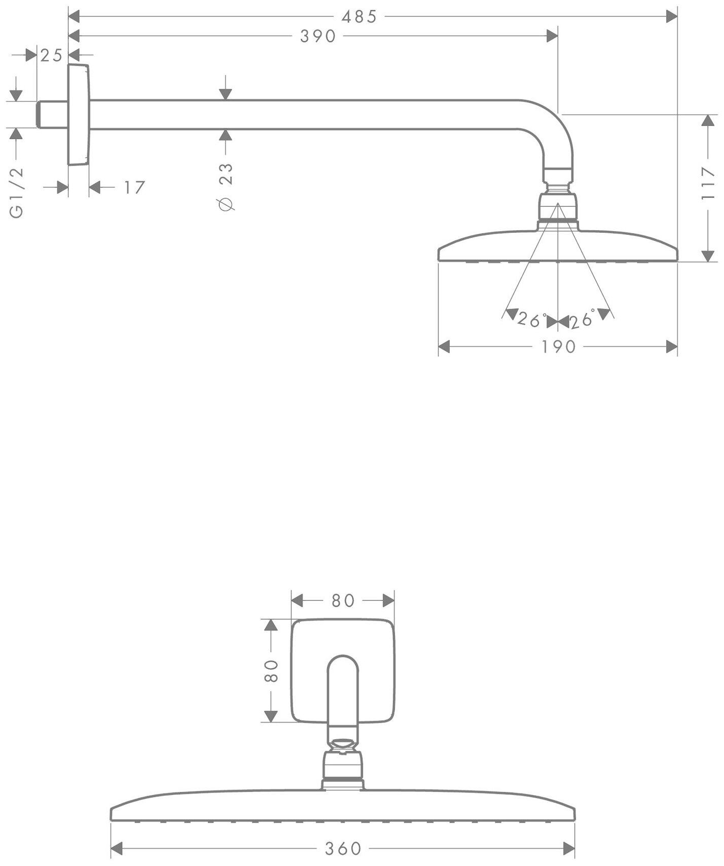 | Размер верхнего душа, мм | 360 |
