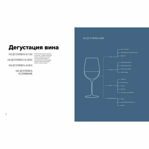 - Все по делу, красочно, интересно, чётко. Вкусовые сочетания, подробные описания, география производства и тд. Каждое вино описано по одинаковой схеме.