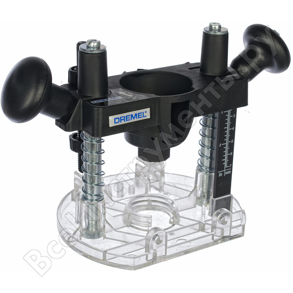 Столик для фрезерования Dremel превращает Ваш инструмент Dremel во фрезерный станок, который может фрезеровать по окружности, гравировать символы и выполнять инкрустацию, изготавливать декоративные кромки, а также фрезеровать параллельно кромке. Упор глубины в рукоятке - просто поверните рукоятку для блокировки/разблокировки. Два ограничителя глубины для быстрой и последовательной регулировки глубины. Направляющая кромки и направляющая окружности для фрезерования по прямой и изготовления точных по форме окружностей. Комплект направляющих втулок для фрезерования букв и изображений по шаблону.