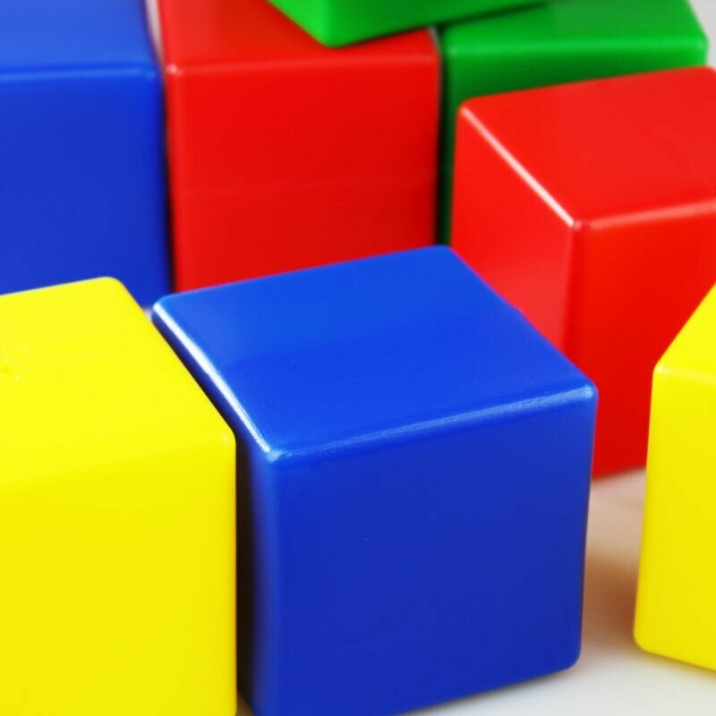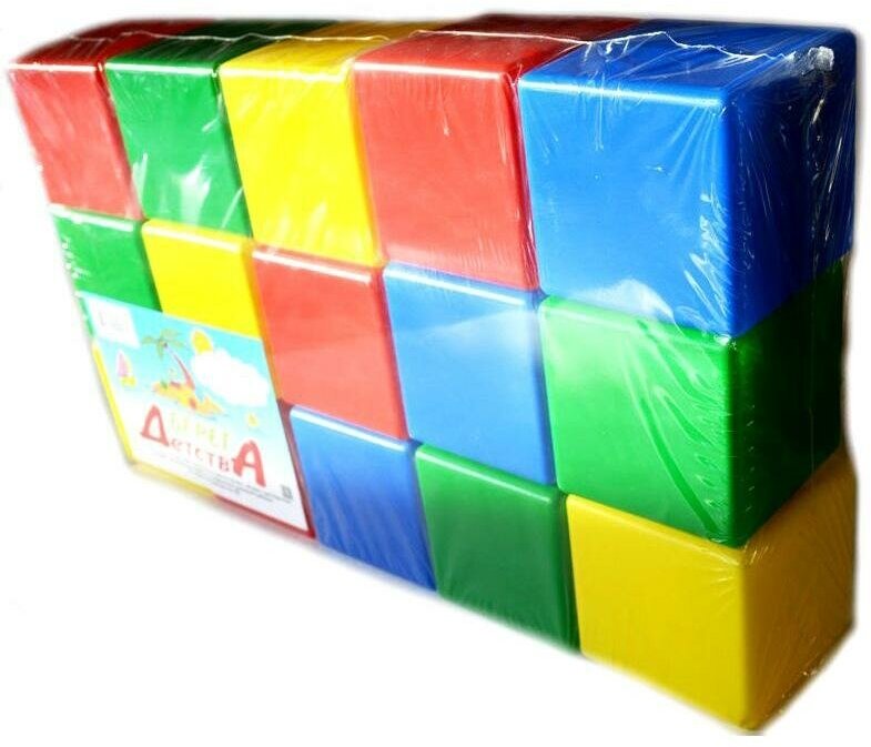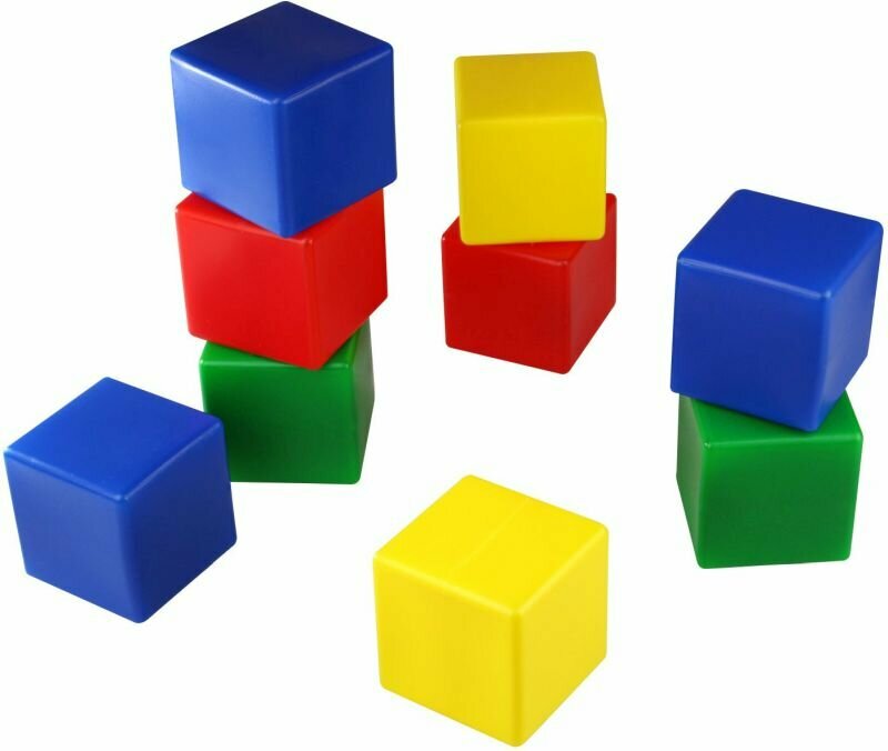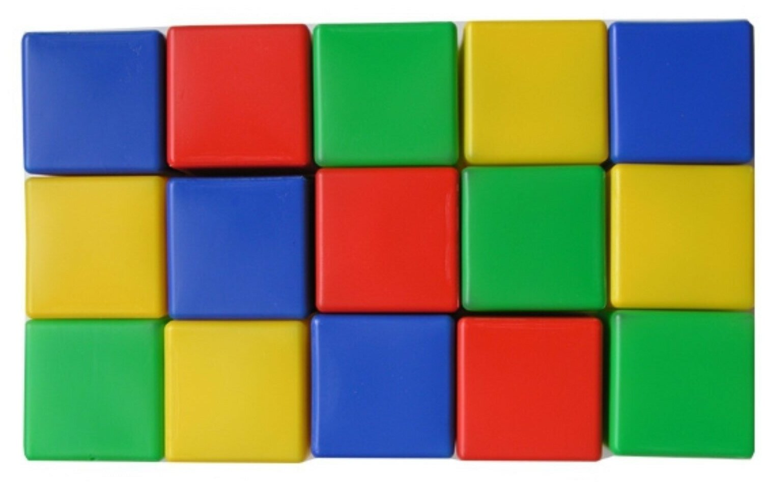 Данный набор включает в себя 15 разноцветных кубиков красного, желтого, зеленого и синего цветов. Кубики изготовлены из выдувного пластика, а значит они полые внутри и очень легкие. У них нет острых углов, они не мнутся и не выцветают на солнце. Кубики можно использовать как первый конструктор, помогая малышу строить из них простейшие конструкции и называя ему цвета кубиков.