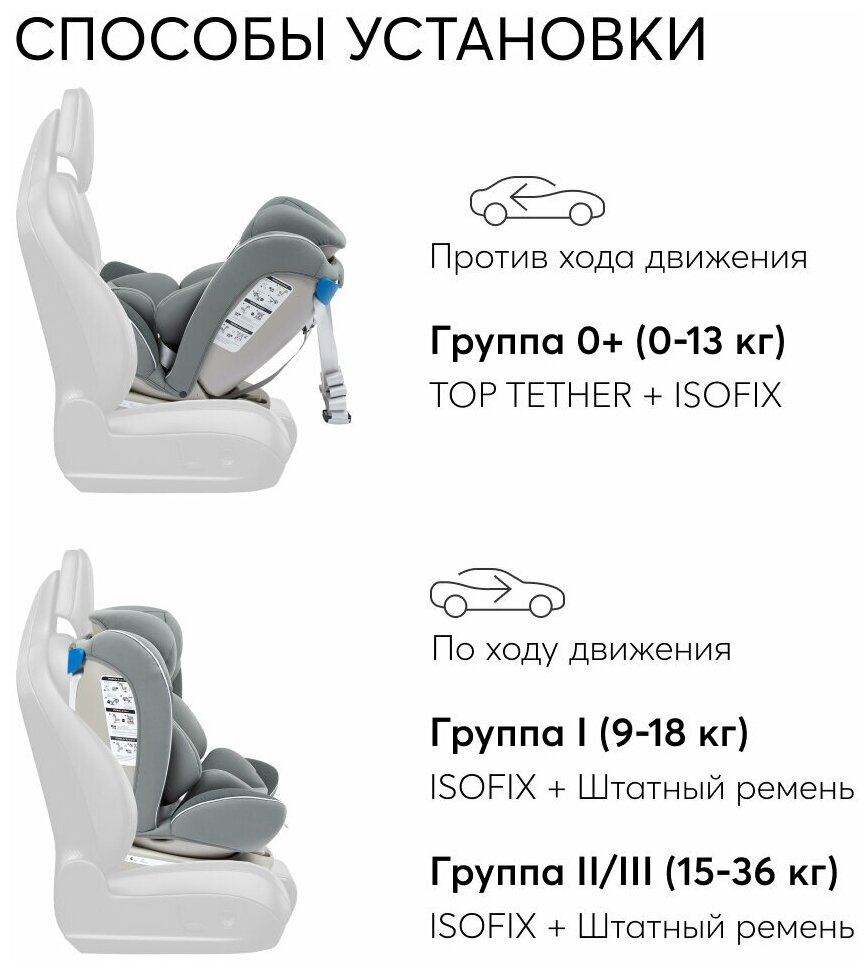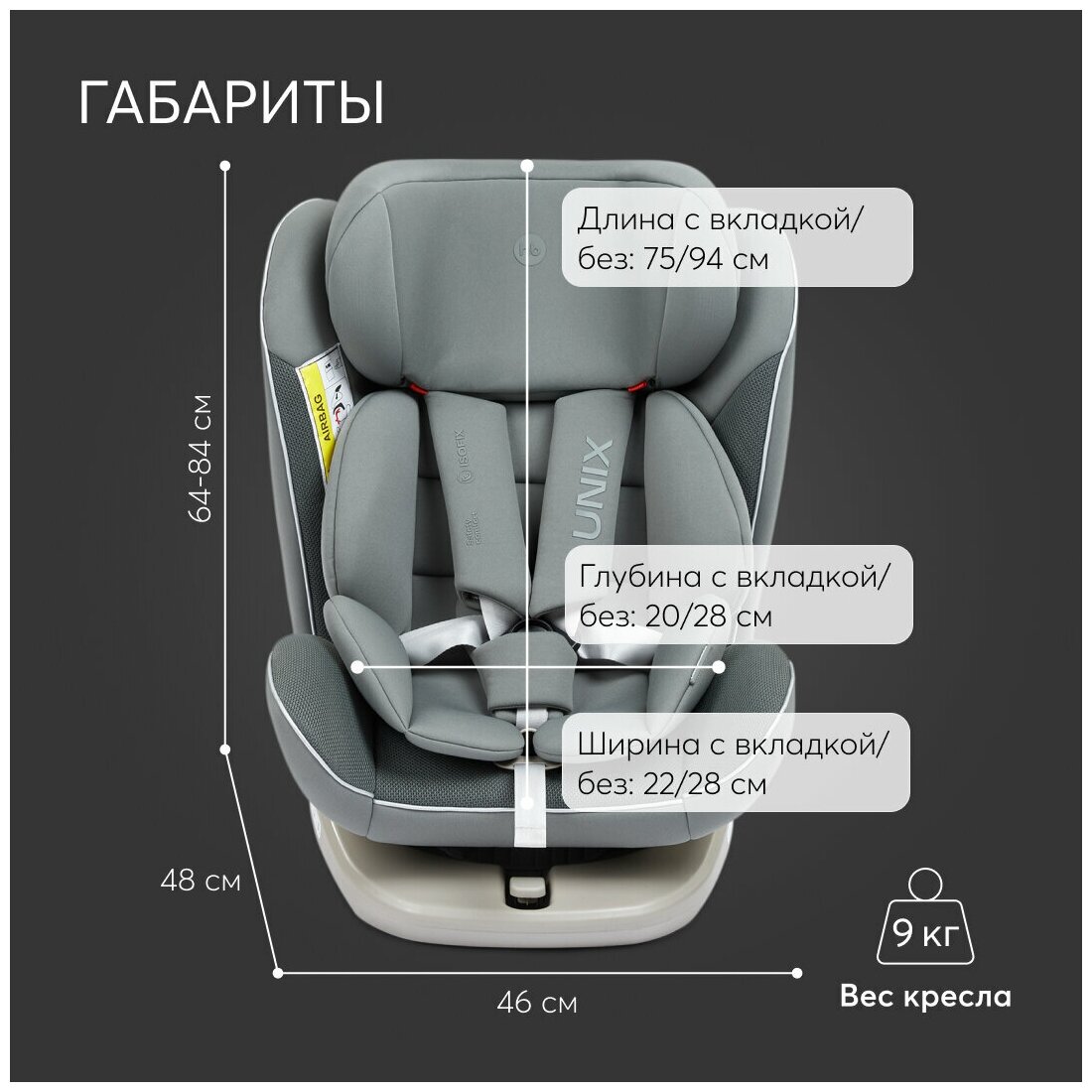 Unix — универсальное автокресло для детей с самого рождения и до 12 лет, которое имеет возможность установки как с помощью трехточечных ремней безопасности автомобиля, так и с помощью системы ISOFIX. Различные варианты установки и поворотная база предлагают широкие возможности для наиболее удобного и безопасного расположения в любом автомобиле.