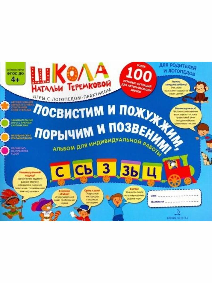 Исправить даже самые сложные свистящие звуки С, Сь, З, Зь, Ц можно! Если работать над ними в игровой форме. Именно такие занятия Наталья Теремкова предлагает родителям и педагогам в новом альбоме.