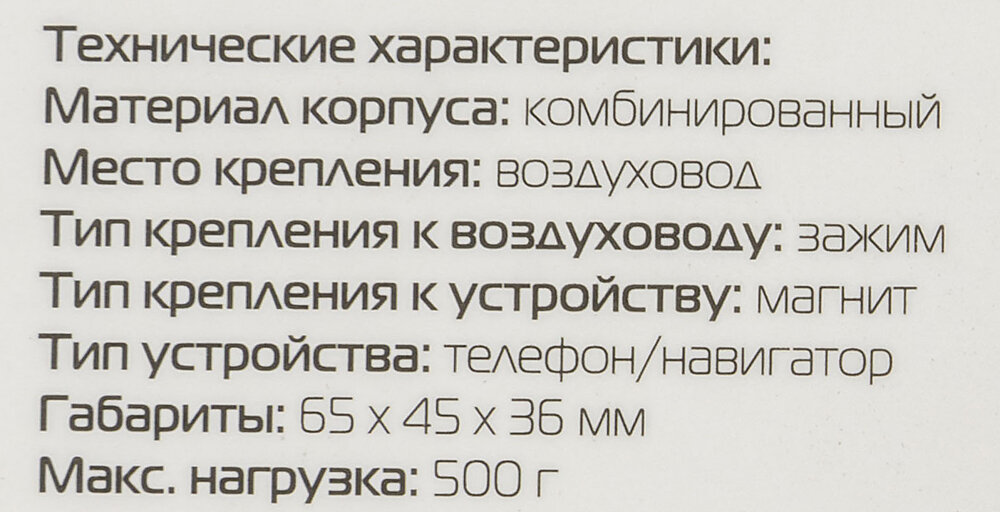 | Описание | Магнитный держатель крепится на решетку вентиляции с помощью зажима. Предназначен для телефонов и навигаторов. |