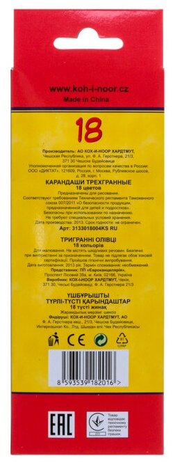 Сервис сравнения цен СкидкаГИД предлагает сравнить цены на товар «Карандаши цветные Koh-I-Noor трехгранные 18 цв. TrioColor 3133 3133018004KSRV»