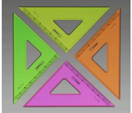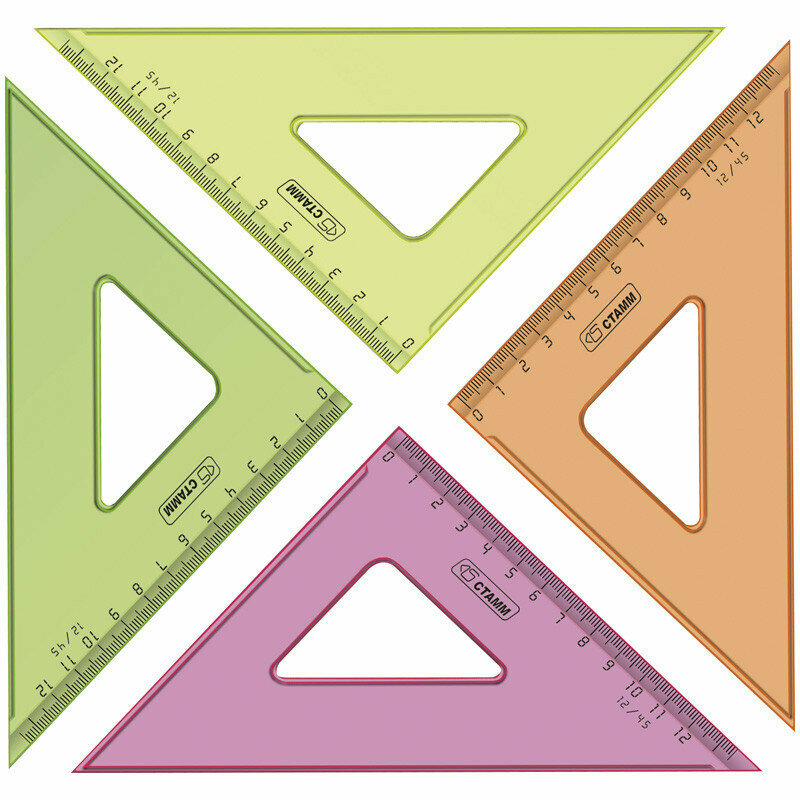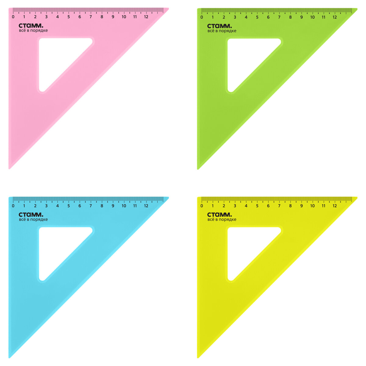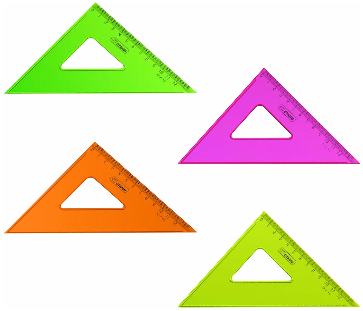 Треугольник пластмассовый Стамм 45 градусов 12 см для чертежных работ. Флуоресцентные цвета.