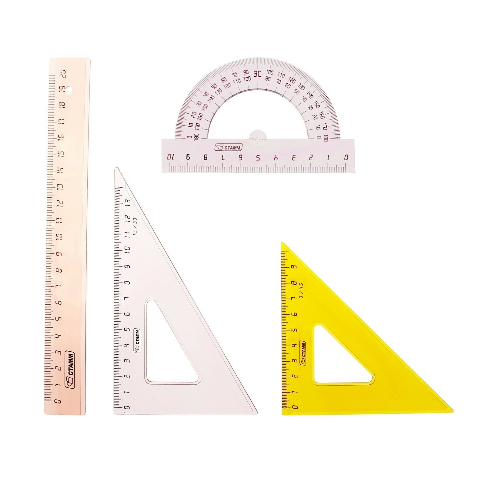 | Состав набора | линейка, треугольник, транспортир |