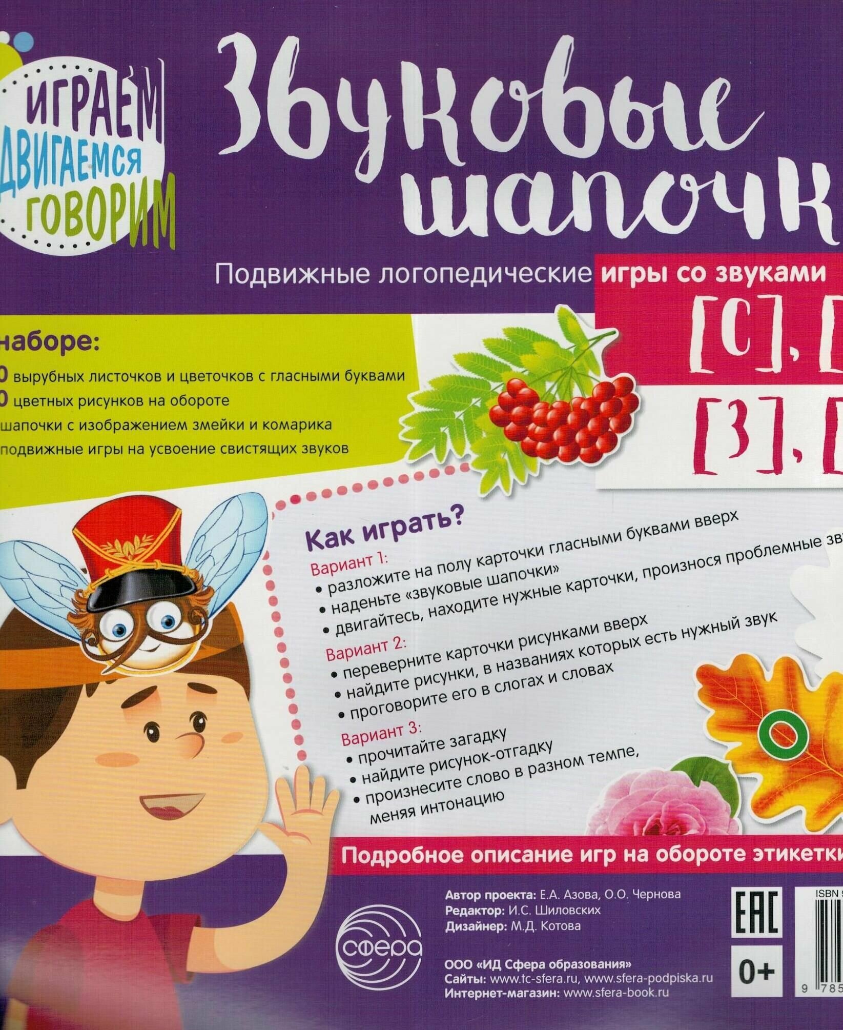 Звуковые шапочки. Подвижные логопедические игры со звуками [С] [С'] [З] [З'] (Азова Елена Александровна, Чернова Ольга Олеговна); Сфера, 2019