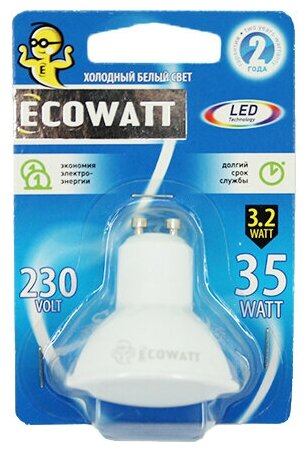 Светодиодная лампа ECOWATT Gu10 220В 3.2(35)w 4000k gu10