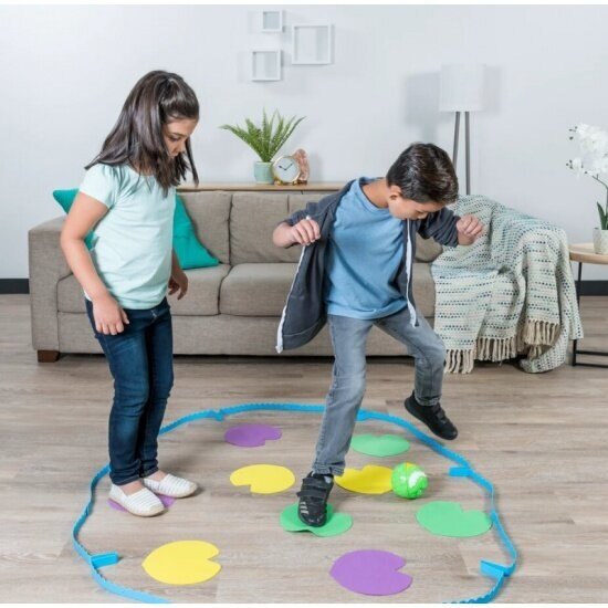 Мячик будет непрерывно вращаться внутри «озера» натыкаясь на препятствия и меняя траекторию своего движения. Задача участников избежать столкновения с крокодилом, перепрыгивая с кувшинки на кувшинку. Если мяч коснулся островка, он убирается с игрового поля.