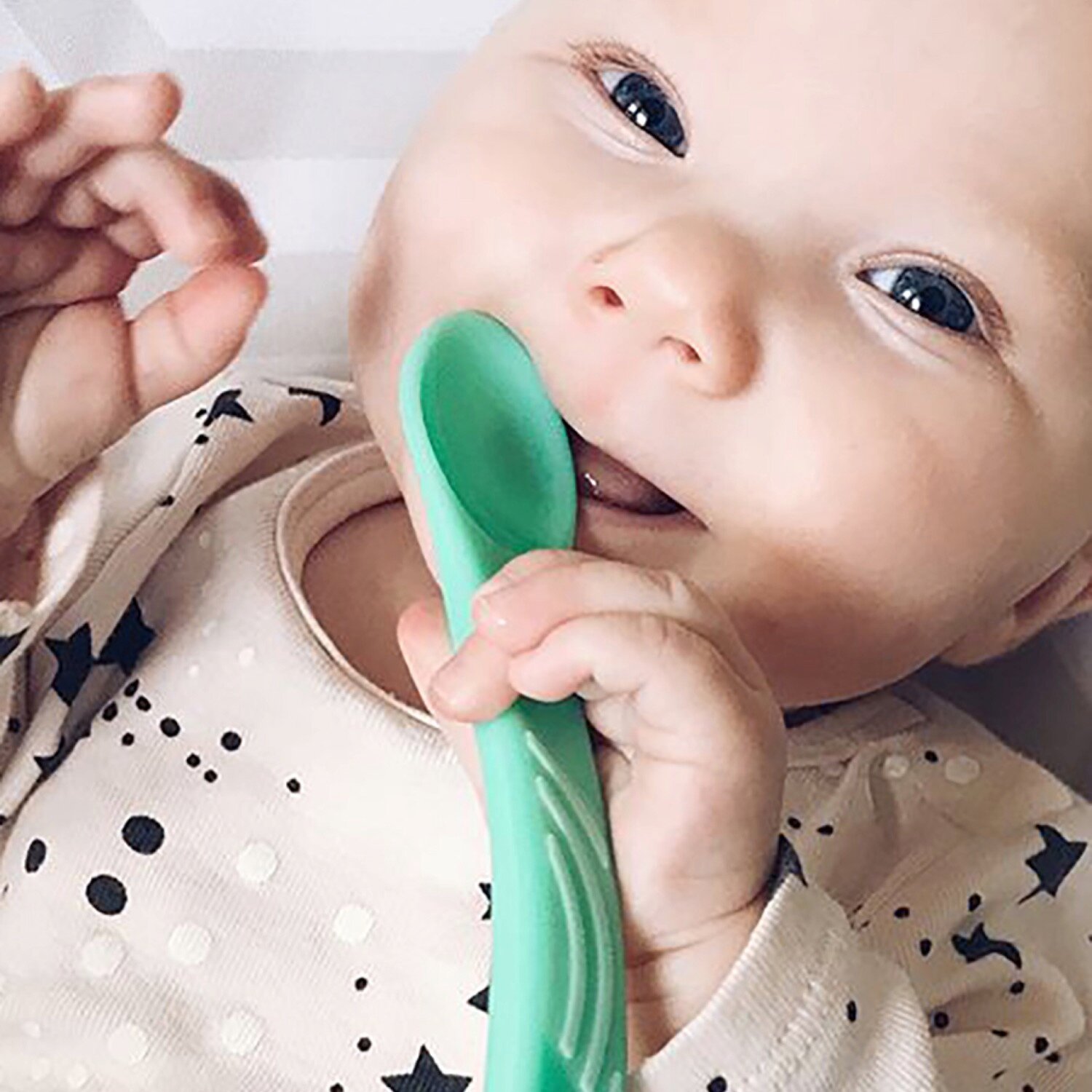 Эргономичный дизайн ложек разработан для комфортного кормления ребёнка. Особенности: Длинная рукоятка и изогнутый черпак – удобно черпать из глубоких стаканов и баночек. Мягкая ребристая поверхность – не выскользнет из рук малыша.