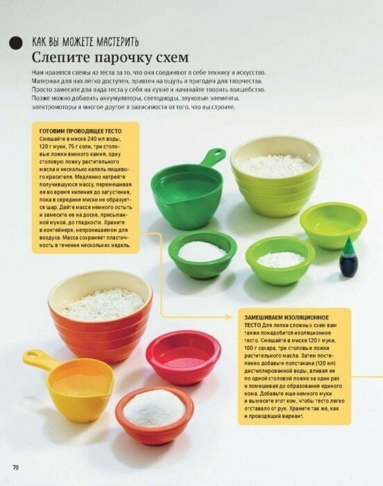 Вы узнаете, как делать кукол-марионеток и гоночные треки из картона, как лепить электрические схемы из теста, как шить модную одежду из пластиковых пакетов и многое другое.