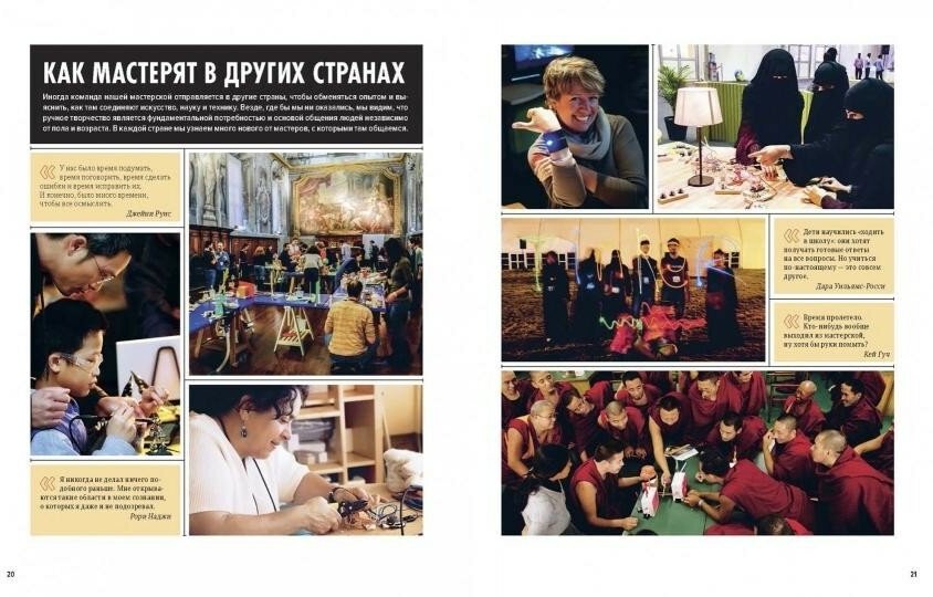 Книга "Искусство мастерить" - для тех, кто идет по пути познания окружающего мира через творчество и научные эксперименты. В ней представлены портреты 23 мастеров-любителей, в разное время работавших в Творческой мастерской музея "Эксплораториум". Герои книги рассказывают о своих любимых приемах, инструментах и материалах, источниках вдохновения, поисках и сомнениях. Словом, обо всем, что помогает им воплощать в жизнь свои оригинальные идеи.
