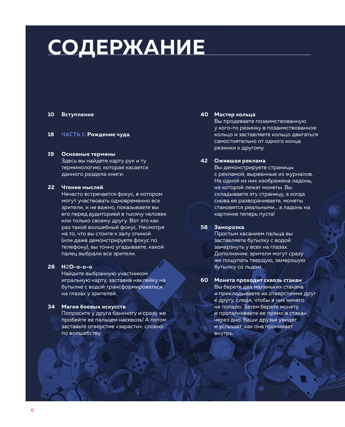 Книга очень понравилась! Когда начинаешь интересоваться фокусами сложно представить учителя лучше, чем живую легенду мира магии. Очень интересно Фрейн рассказывает про свой жизненный путь от ребенка до одного из лучших иллюзионистов мира. Невероятно увлекательная история, вся книга читается на одном дыхании. И, конечно, без практики не обходится. В конце книги автор буквально раскрывает свои секреты и объясняет свои лучшие фокусы.