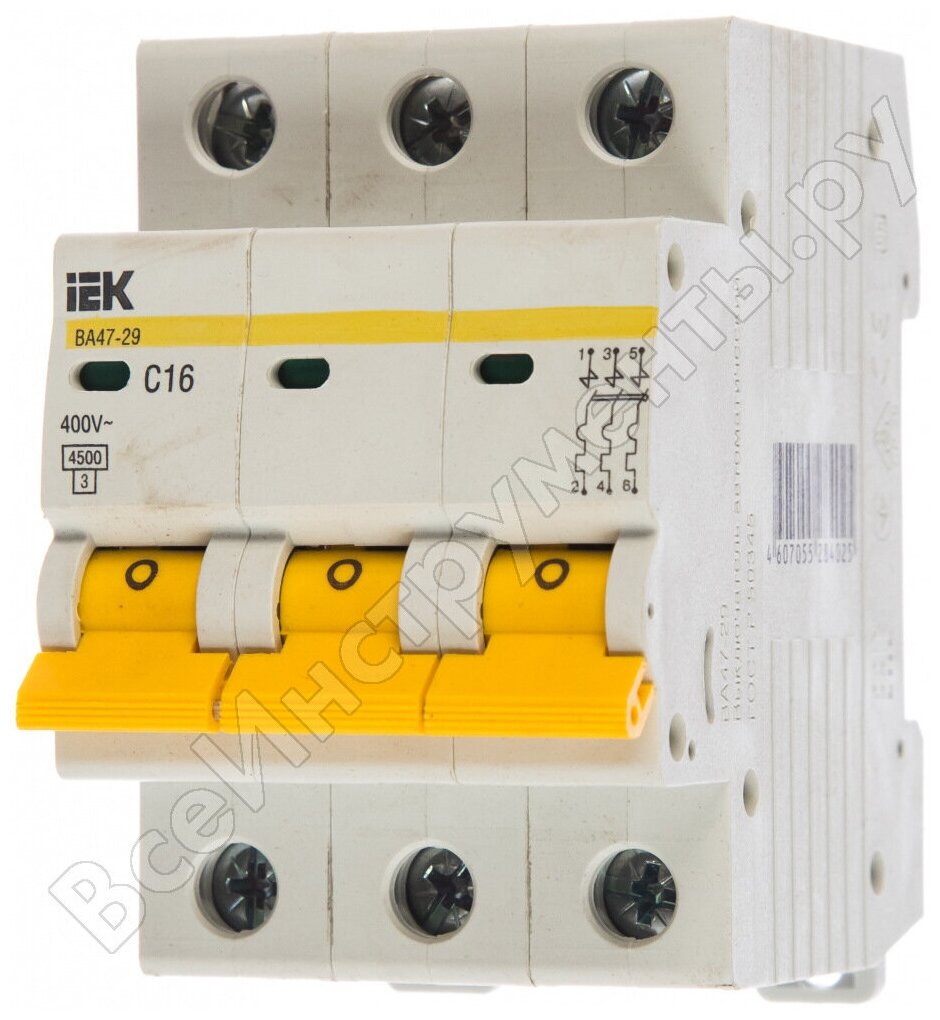 - Прогрузка автоматических выключателей IEK ВА 47-29, С16А