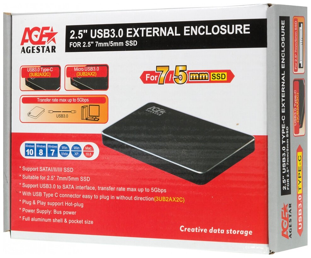 Внешний корпус для HDD/SSD AGESTAR 3UB2AX2 черный 3UB2AX2 (BLACK)