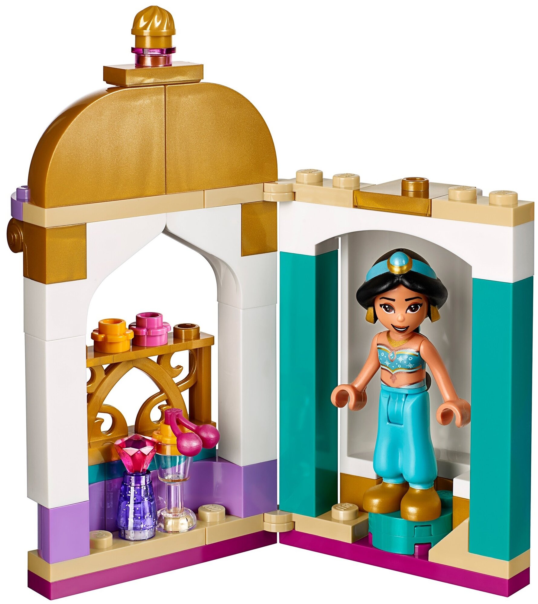 Набор конструктора LEGO Disney Princess Башенка Жасмин состоит из 49 деталей. С ним девочка от 5 лет сможет собственными руками собрать дворцовую башенку. Принцесса Жасмин – главная героиня мультфильма Disney Аладдин. Она одета в бирюзовый топ и бирюзовые штаны, а на ее ножках красуются золотистые туфельки. Принцесса Жасмин отдыхает в своей башенке с балкончиком, которую можно собрать из деталей набора. А дополнительные аксессуары сделают игру еще увлекательнее!