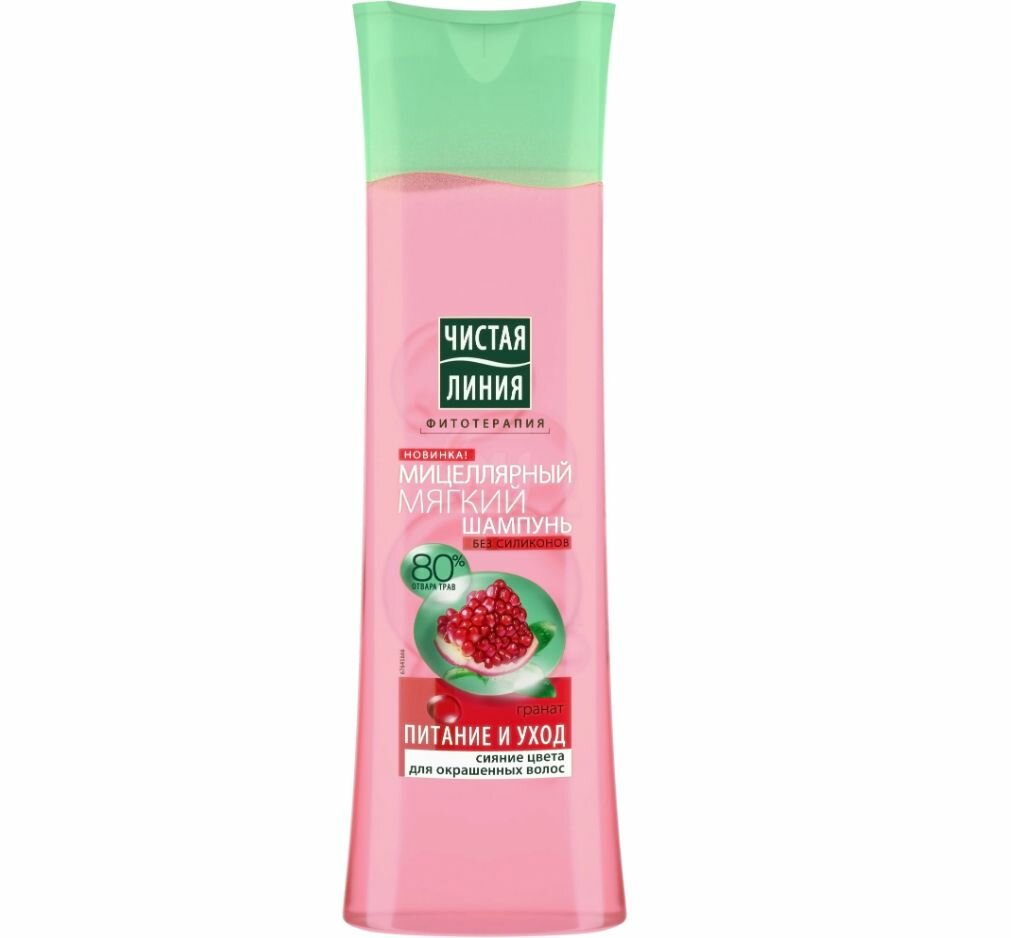 Мицеллярный шампунь Чистая Линия бережный Питание и уход для окрашенных волос Шиповник