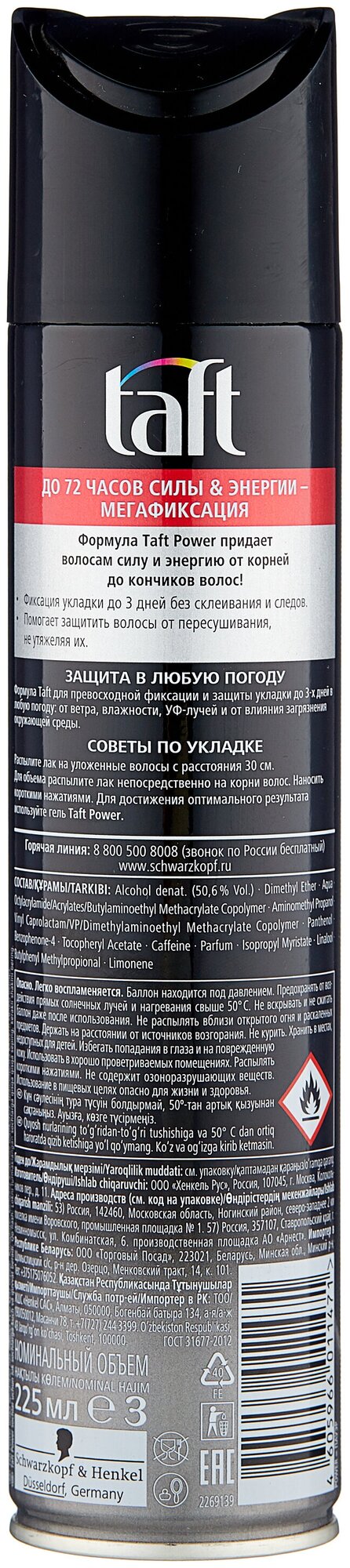 Лак для волос Taft Power Мегафиксация обеспечивает 24 часа надежной фиксации. Сила кофеина известна благодаря своим укрепляющими свойствами. Инновационная формула с кофеином обеспечивает волосам силу и красоту. Чем бы вы ни занимались, ваша прическа всегда будет великолепна.