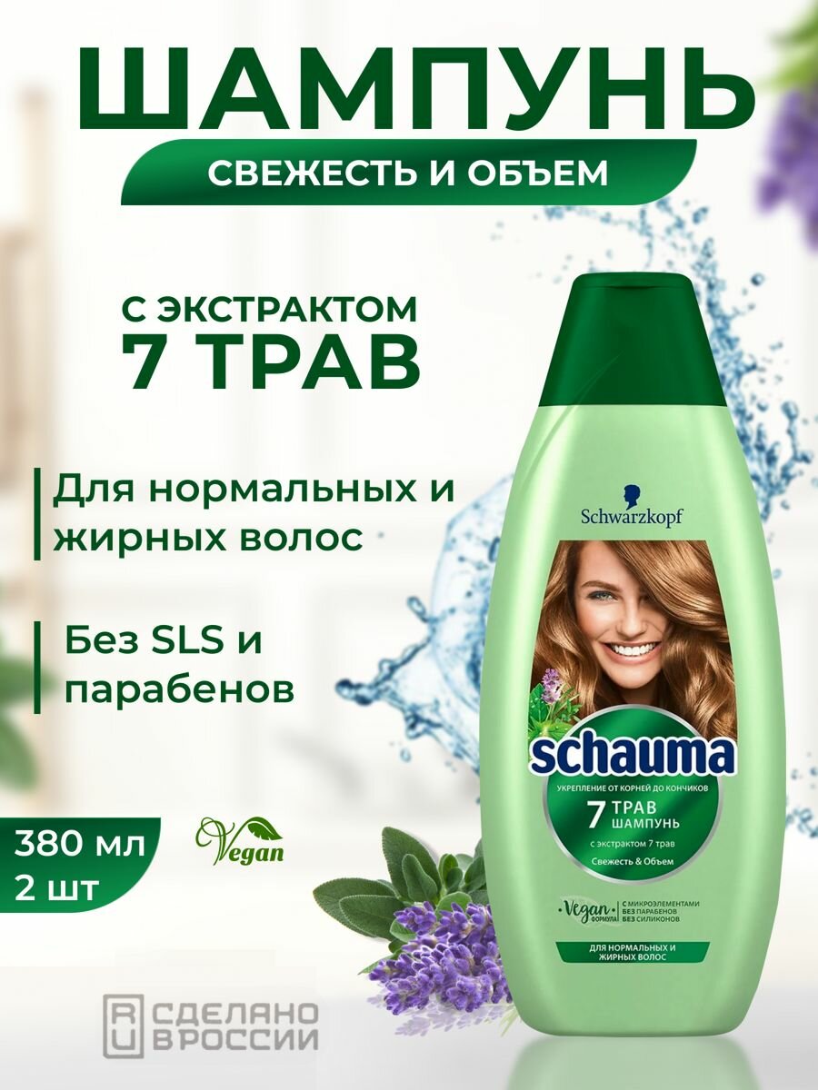 Шампунь Schauma 7 Трав для нормальных и жирных волос свежесть и объём 380 мл