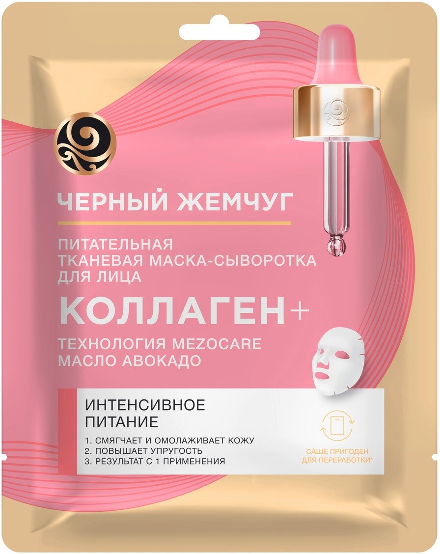 Маска для лица Черный Жемчуг Коллаген+ питательная тканевая 24 мл