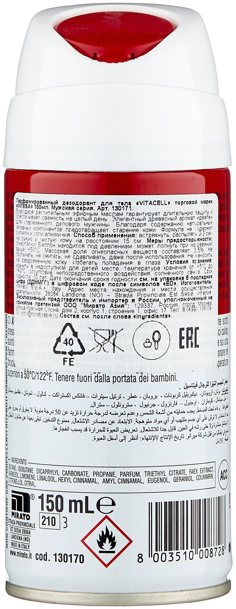 | Способ применения | Тщательно встряхнув баллон, распылять на чистую и сухую кожу подмышек с расстояния 15 см. |
