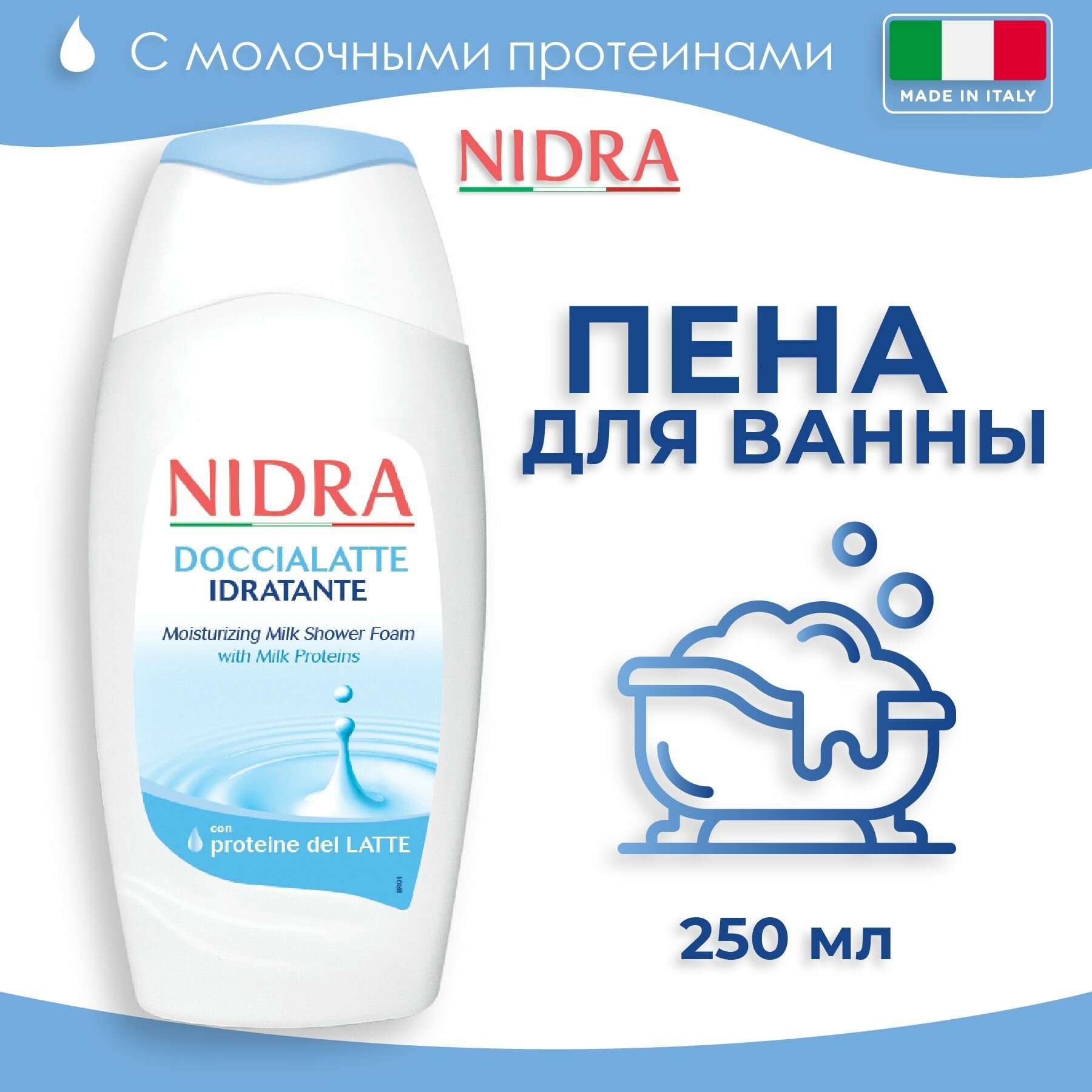 | Полное наименование | Пена для ванны NIDRA увлажняющая с молочными протеинами 250мл |