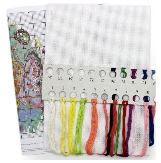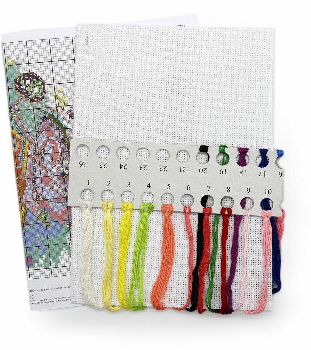| В набор входит | хлопковая канва Aida 14 ct, хлопковое мулине (20 цв.), цветная символьная схема, игла, инструкция по вышиванию. |