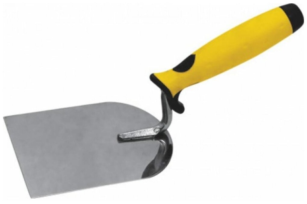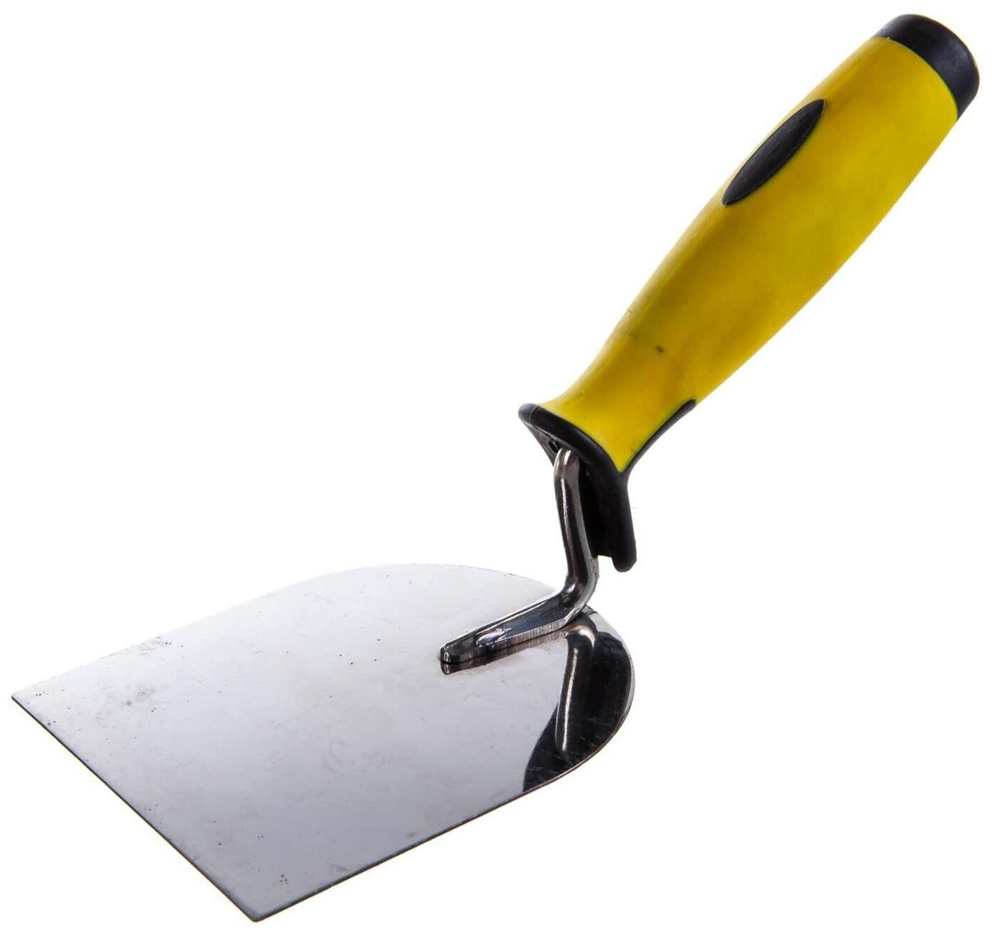 Мастерок отделочника «Лопатка». Для равномерного нанесения штукатурного раствора на поверхность. Материал: нержавеющая сталь, мягкая прорезиненная ручка.