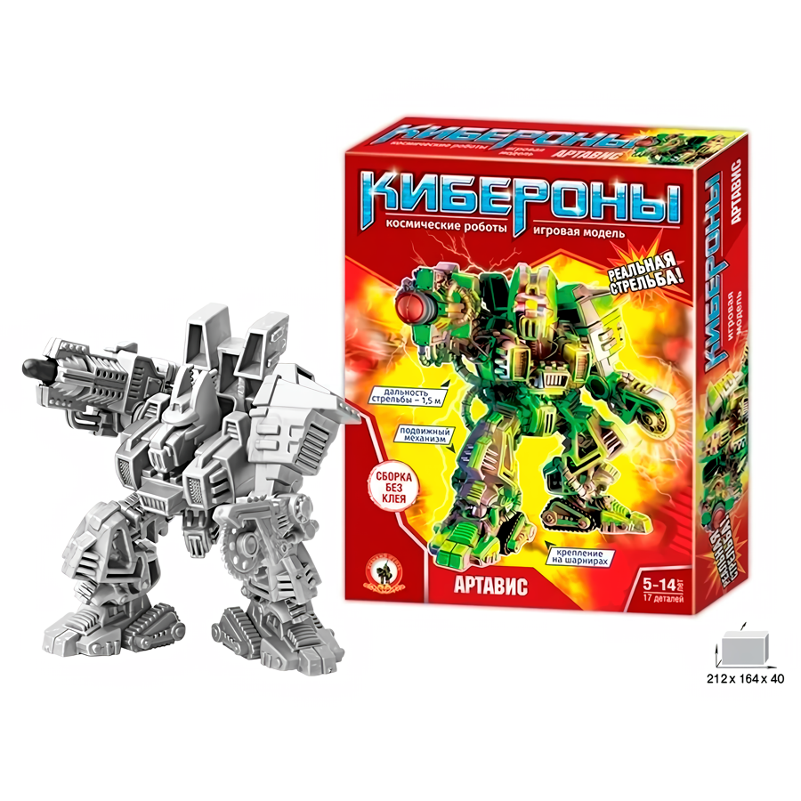 Кибероны-это серия сборных моделей боевых киборгов. Готовая фигурка подвижна, робот оснащен мощным оружием, стреляющим пластмассовыми снарядами. Дальность стрельбы - 1. 5 метра.