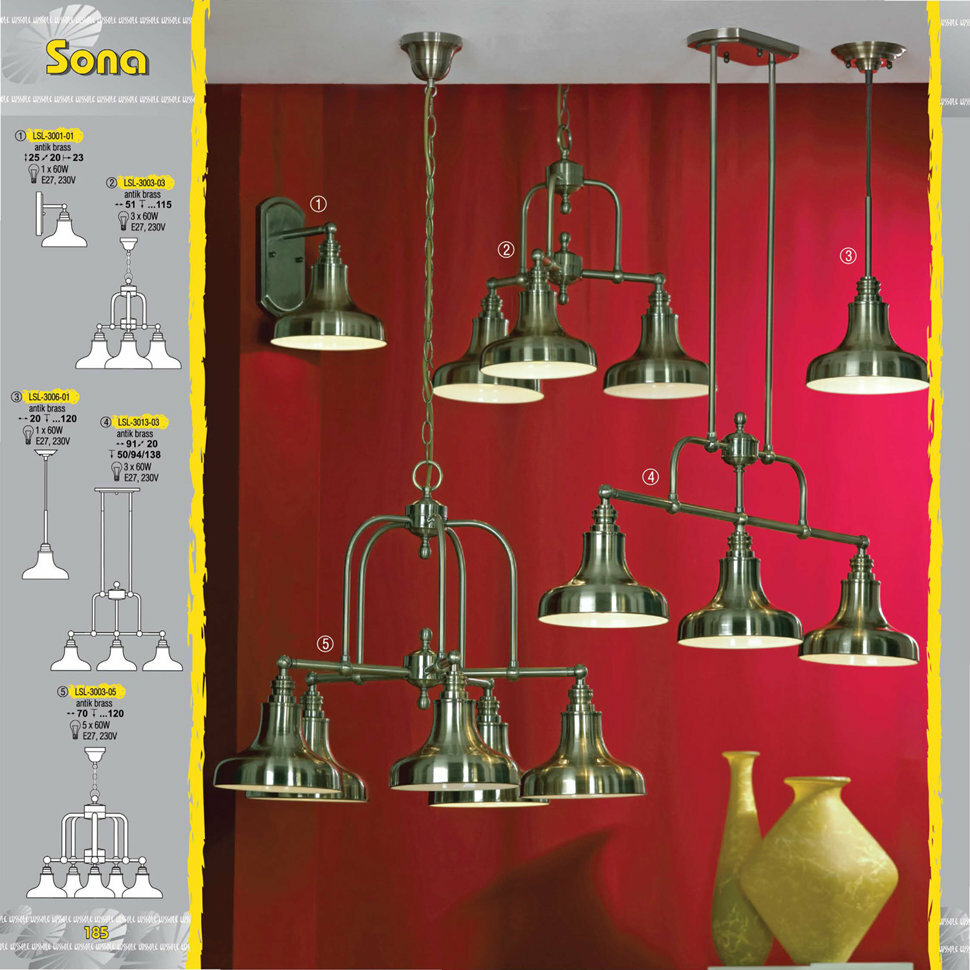 Подвесной светильник Sona - продукт известной компании Lussole (Италия). Имеет максимальную мощность 180 Вт, освещает площадь до 9 кв. м. Отлично подойдет для таких мест, как гостиная, кафе, спальня. Впишется в интерьеры следующих стилей: Классический.