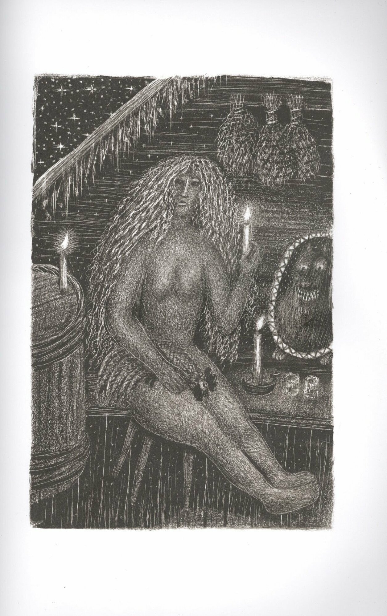 Его графические работы вызывают восторг! А в этой книге стиль художника необычайно подошел к старинным русским поверьям. Все его лешие, водяные и русалки органично "внедрились" в текст и остались там жить! -