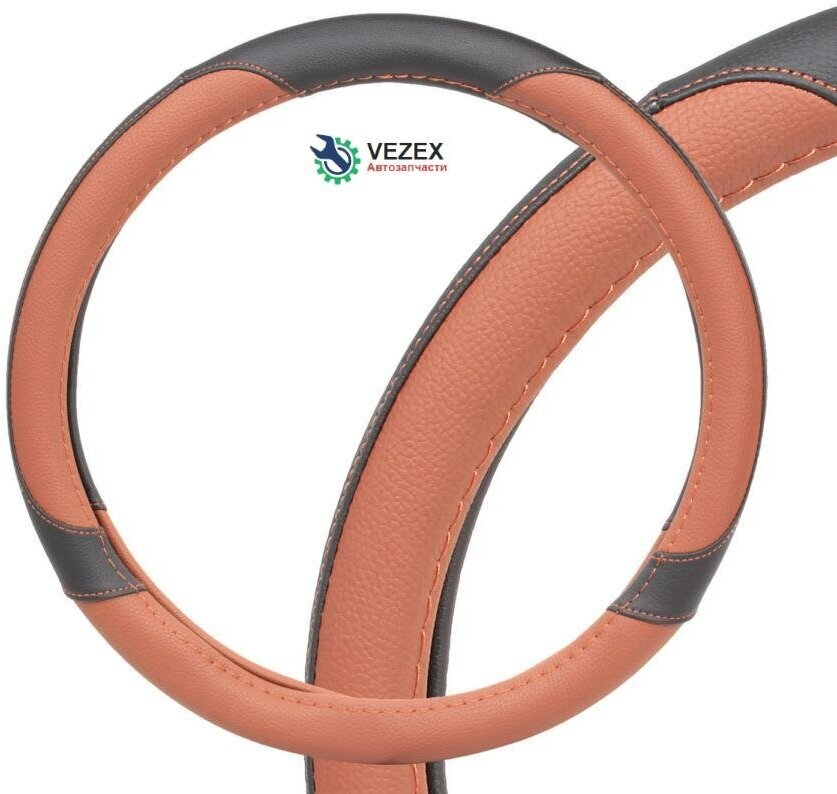 Модель оплетки из искусственной кожи имеет диаметр 38 см, а также стильную расцветку, сочетающую коричневый и черный цвет. Оплетка надежно фиксируется на руле автомобиля и предохраняет его от появления дефектов различного уровня.