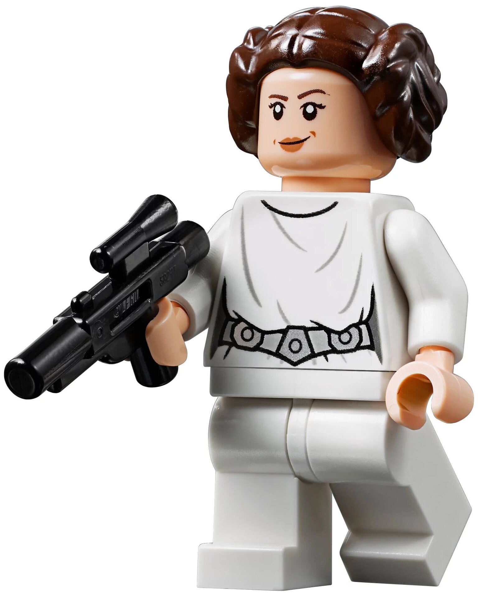 - Принцесса Лея Органа-Соло – лидер Галактической Гражданской войны, поддерживает повстанцев. Прическа коричневого цвета, характерная персонажу фильма. Белый костюм с драпировкой на поясе. В руке бластер.