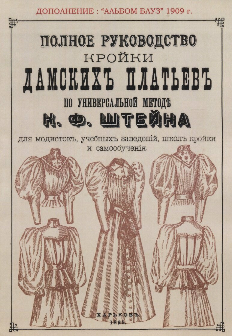 Репринт с издания. Две книги в одном переплете. 1) Полное руководство кройки дамских платьев. На 40 листах 210 рисунков. Харьков. 1895-1896. 2) Сезон 1909 г. Альбом блуз. Рисунки и крой 27 блуз. СПб. Приложение к журналу "Вестник Моды". Книга изготовлена по технологии "печать по требованию". Тираж 30 экз.