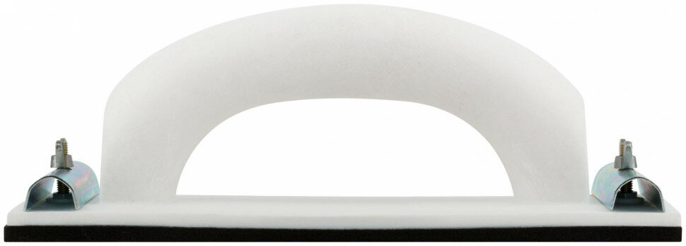Для наждачной бумаги. Используется при обработке плоских поверхностей. Материал: пластик, с металлическим прижимом.