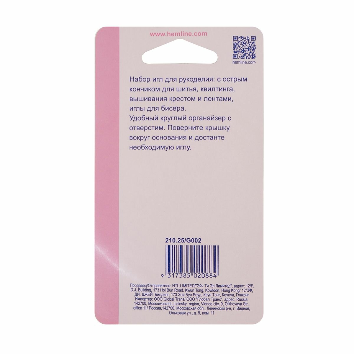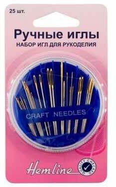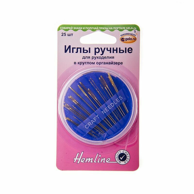 21025 Набор игл для вышивания и рукоделия в круглом органайзере 25 шт Hemline