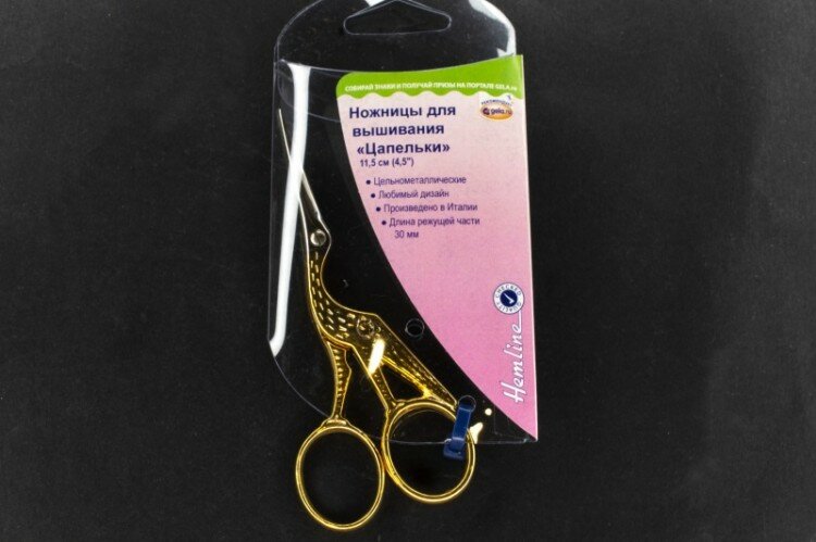 Ножницы "Цапельки" с позолоченной ручкой, предназначены для вышивания, рукоделия.
