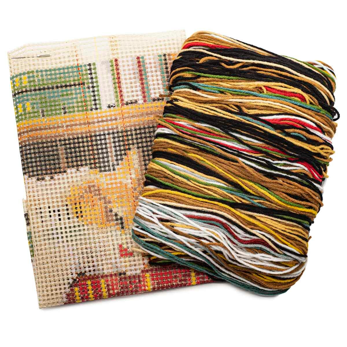 В упаковке: жесткая канва страмин с нанесенным изображением, толстая пряжа для вышивания, игла, инструкция.