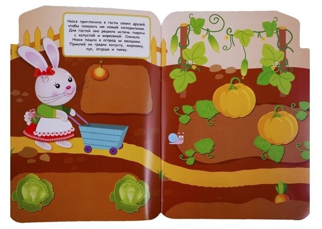 Зайка Нюся купила новый холодильник и пригласила в гости друзей. Сколько лакомств принесли зайке её друзья! Поиграй с яркими наклейками и помоги Нюсе заполнить все полочки холодильника. Вариантов игры может быть множество - ведь наклейки многоразовые.