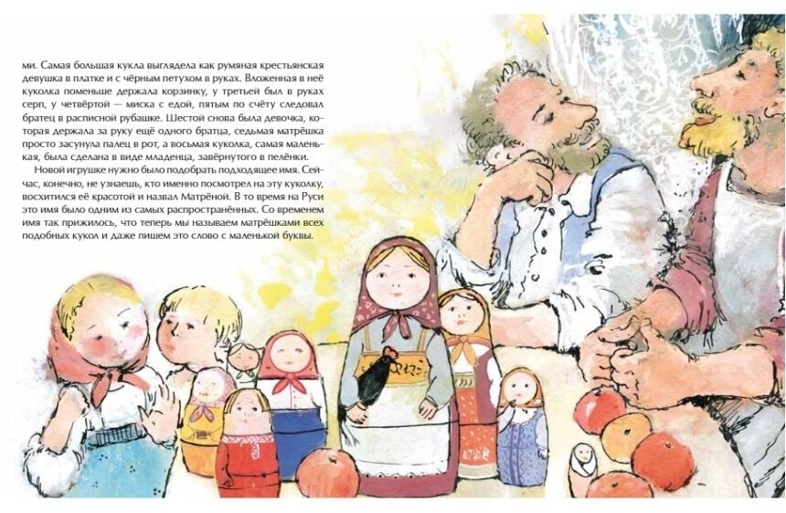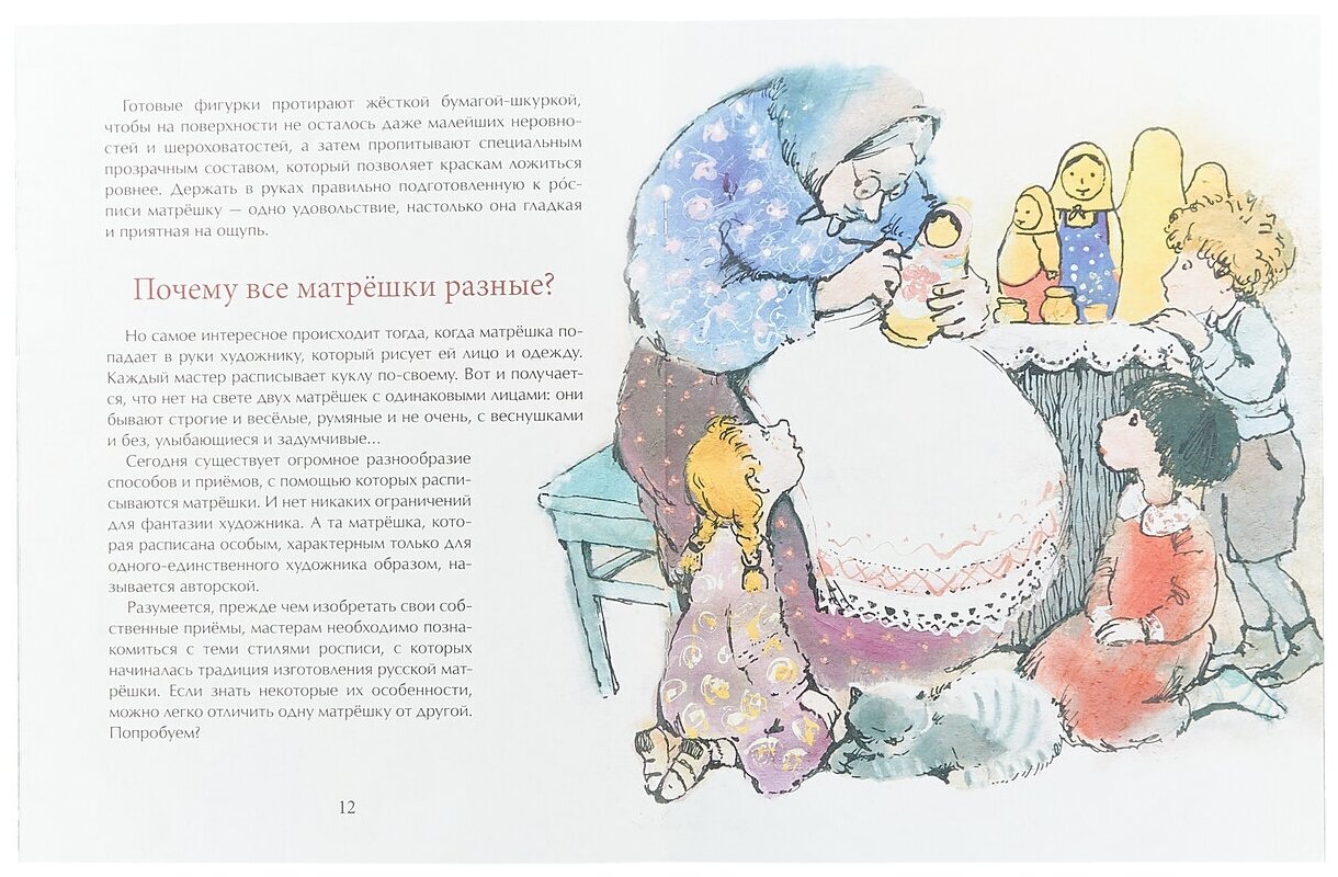 Небольшая по формату, но очень содержательная книжечка про популярный русский сувенир и удивительную детскую игрушку -матрешку: кто придумал матрешку, как она появилась в России, почему она так называется, какой город считается «матрёшечной столицей», как матрешку изготавливают, почему матрешки разные, чем отличается загорская матрешка от семеновской, что такое вятская соломка, сколько фигурок обычно в одной матрешке и где живет самая большая матрешка.
