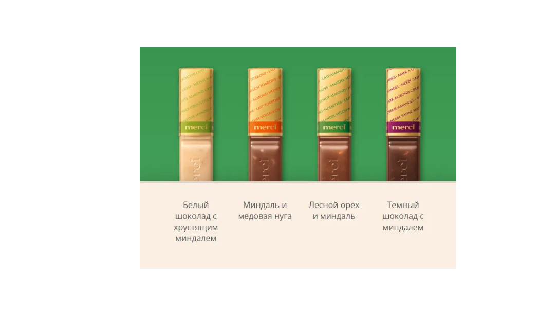 | Состав | конфета "молочный шоколад с лесным орехом и миндалем" |