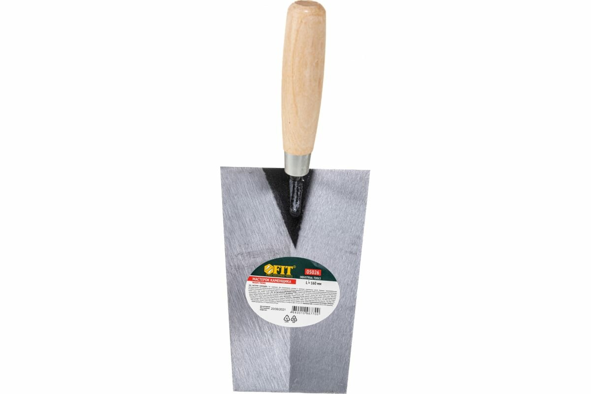 Мастерок каменщика Трапеция 160 мм FIT 0 предназначена для равномерного нанесения и распределения строительных смесей на различных поверхностях. Рукоятка выполнена из дерева и имеет удобную форму. Полотно кельмы изготовлено из высокопрочной инструментальной стали и имеет форму трапеции, которая будет удобна при кладке кирпича и возведении стен.