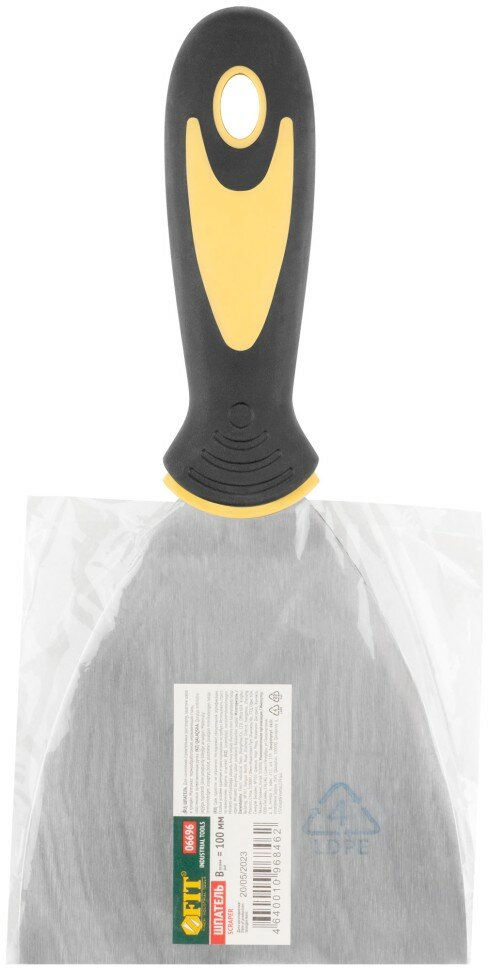 Шпатель FIT (нержавеющая сталь, прорезиненная ручка, 4", 100 мм)