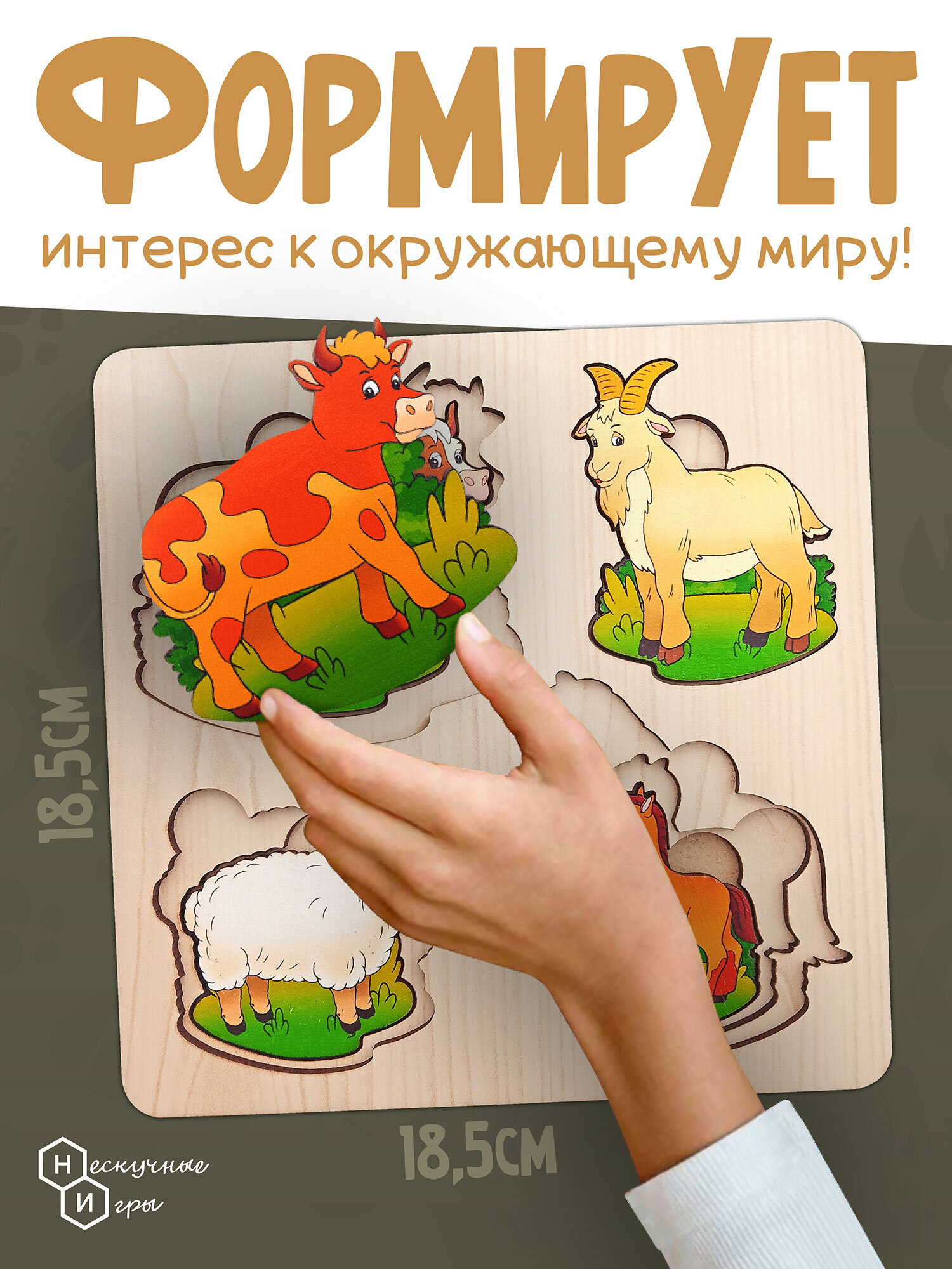 Настольная игра Нескучные игры Развивающая доска Домашние животные, 7914 понравится любому ребенку. Деревянная доска Домашние животные это игровая панель для развития зрительного восприятия, тактильных функций, мелкой моторики, логического и пространственного мышления Вашего малыша, разработанная на основе развивающих методик Эдуарда Сегена.