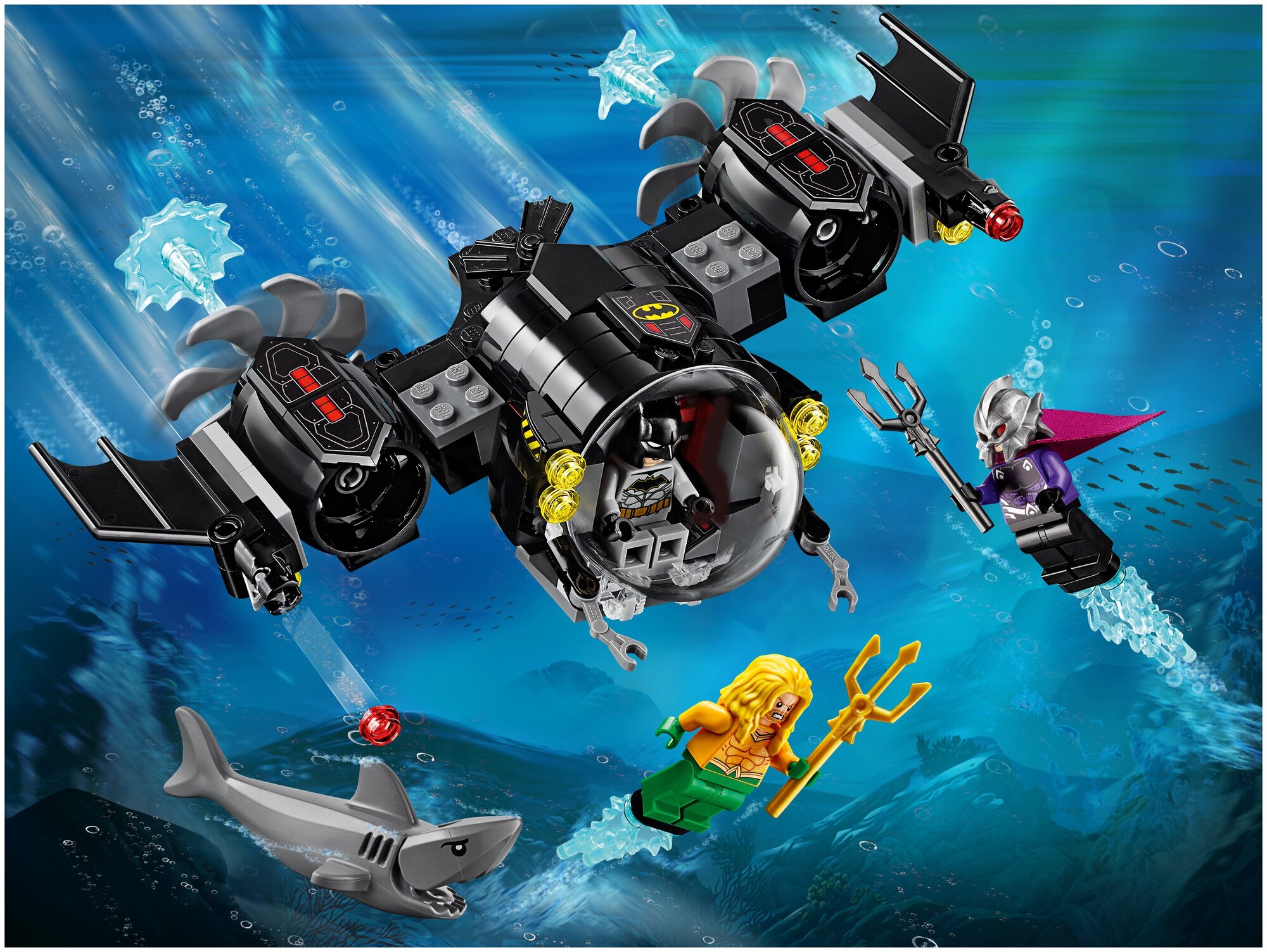 Ныряй в самую гущу битвы против Владыки океана и его акулы на подводной лодке Бэтмена! Чтобы плыть быстрее, раскрути пропеллеры лодки.Стреляй по врагу из всех орудий. Хватай оружие клешнями подводной лодки и придумай свою собственную модель с водными элементами. Отсоедини плавники и используй их как ласты для Бэтмена и Аквамена, которые готовы одержать окончательную победу над Владыкой океана.Разыграй удивительный бой между супергероями и суперзлодеями из уникального набора, рассказывающего о приключениях Бэтмена.Кто победит? Тебе решать!