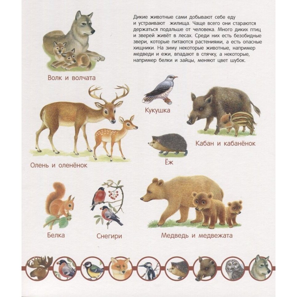 Эта замечательная энциклопедия познакомит вашего малыша с разнообразными животными, в том числе: домашними и дикими, обитающими в лесах и водоёмах, в холодных и в жарких странах. А благодаря плотным картонным страничкам, эта книга прослужит малышу очень долго.